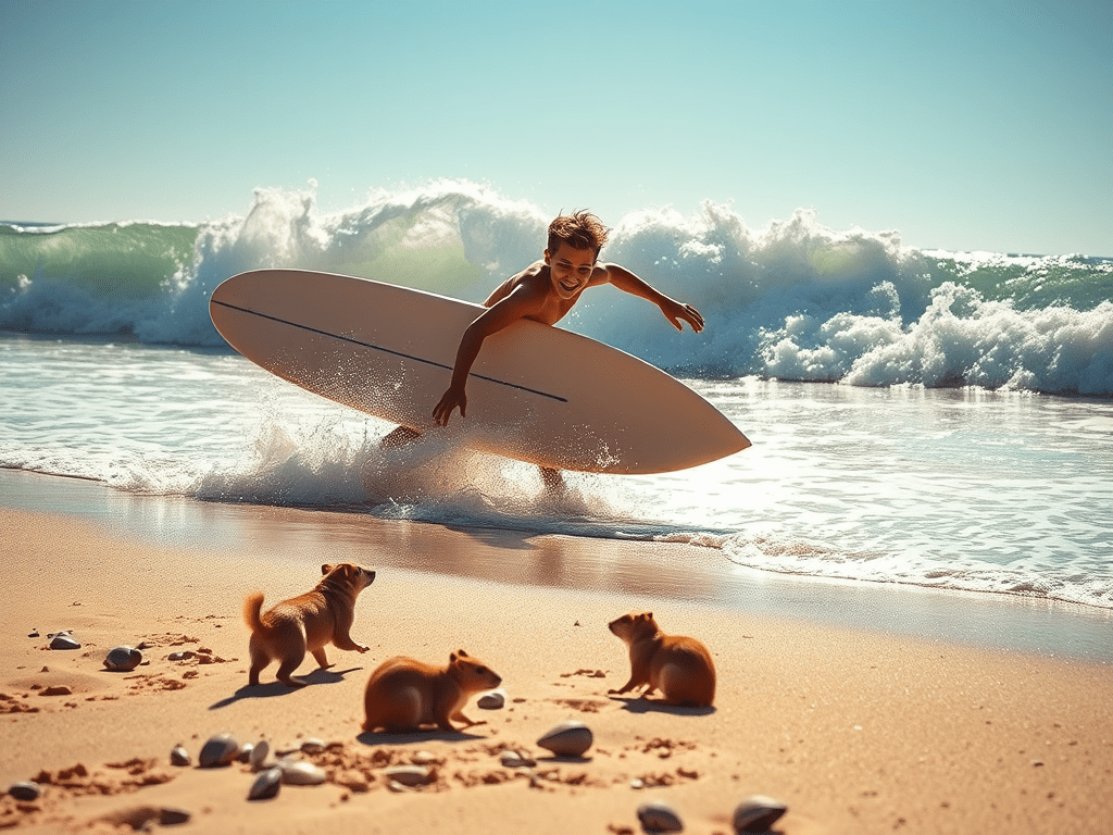 Standing on Santa Monica beach was really fun. We had a great time. My favorite part was surfing for the first time. It was cool Duke really did not like the water at all so that’s the only part that kind of sucked I did get a little bruise but it wasn’t bad though. I also got a surfboard from there, or I guess a paddleboard, actually.